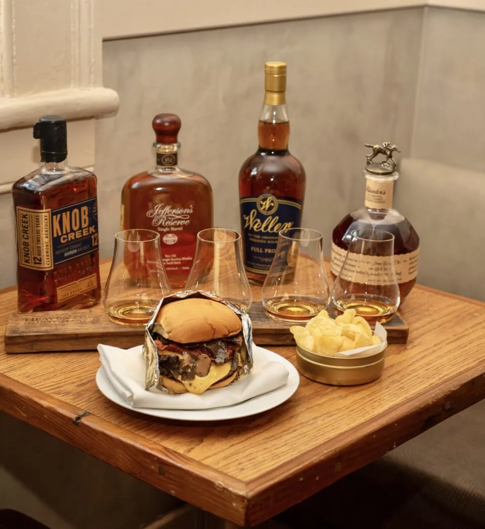 Elevate your afternoon with Bourbon & Burgers, featuring four rare whiskeys expertly paired with our Royale with Cheese Wagyu Truffle Burger. Guided by our team, explore the nuances of each whiskey and how its flavors enhance the richness of our signature burger.